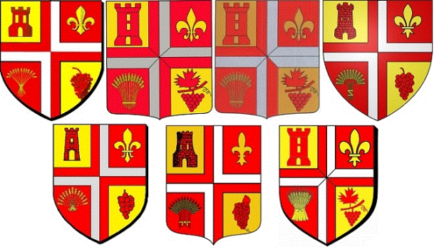 Écartelé d’or et de gueules à la croix contre-écartelée de gueules et d’argent brochant sur l’écartelé, cantonnée au 1er d’une tour de gueules ouverte et ajourée du champ, au 2e d’une fleur de lis d’or, au 3e d’un faisceau rayonnant de treize épis d’or empoigné et lié du même, au 4e d’une grappe de raisin de gueules.