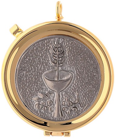 Custode eucharistique à hosties plaque argent calice et raisin