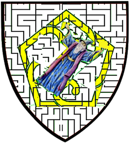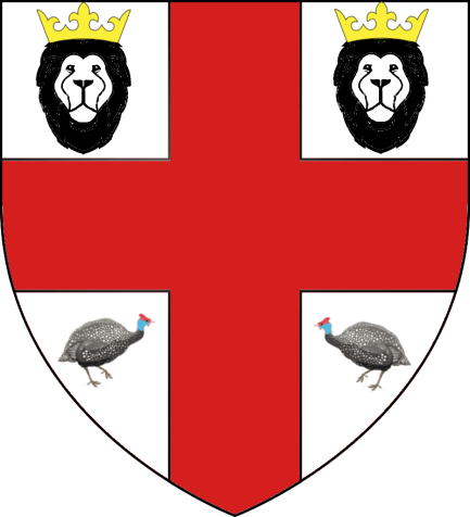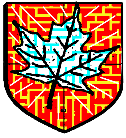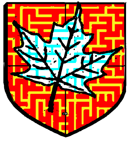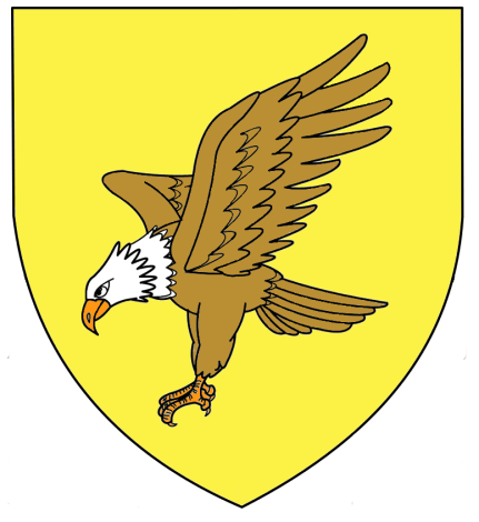 Écartelé, le 1 et le 4 d’azur, le 2 bandé d’or et de gueules, le 3 barré d’or et de gueules aussi, un dragon d’or brochant sur la partition, de l’un en l’autre en 2 et 3