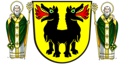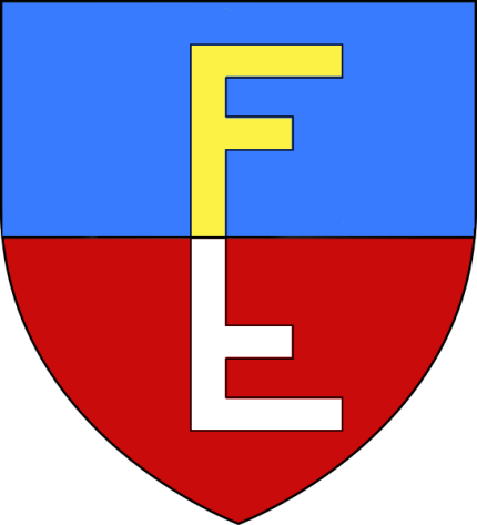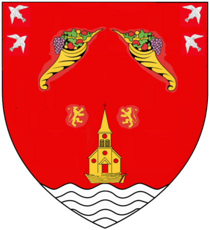 D’azur chaussé d’argent, chargé d’une couronne d’or.