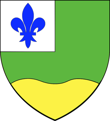 De sinople au franc-quartier d’argent chargé d’une fleur de lys d’azur, à la terrasse ondée d’or.