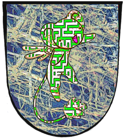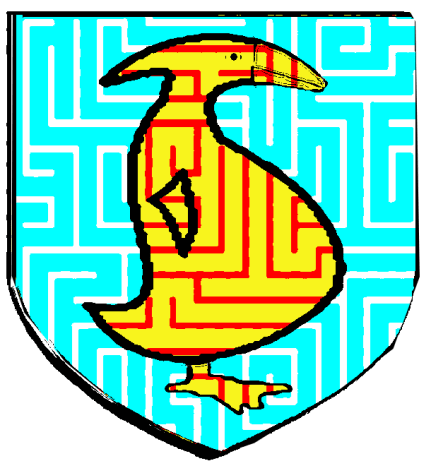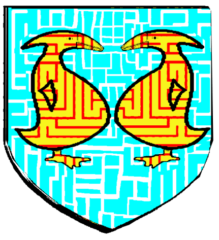 D‘azur à un besant d’argent chargé d’une hermine, accosté en pairle de trois crustacés d’or;