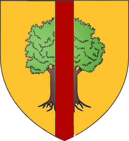 D’or au pal de gueules adextré et senestré d’un demi-arbre arraché de sinople fûté au naturel.