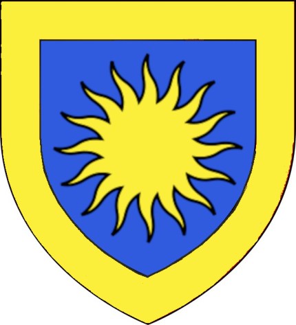 D’azur à la bordure d’or, un soleil d’or aussi brochant sur la partition