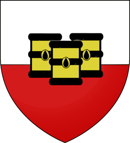 Coupé d’argent et de gueules, trois citernes d’or et de sable brochant sur la partition.