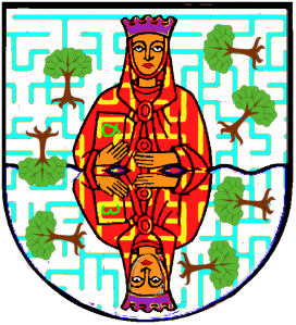Tiercé en bande d’or et de sinople, le 2 chargé d’un rose d’argent.