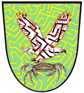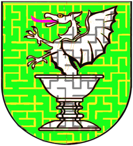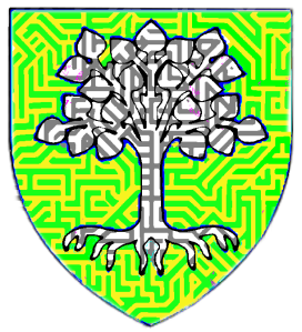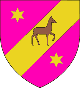 Tiercé en barre de pourpre et d’or, le 1 et le 3 chargé d’une étoile du même, le 2 chargé d’une biche passante contournée, de tanné.