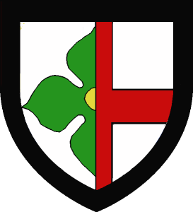 D’argent à la bordure de sable, le 1 au trèfle dimidié, boutonné d’or, le 2 à la croix dimidiée de gueules.