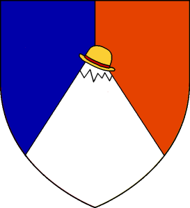 Parti d’azur et d’orangé à la pointe enneigée d’argent
