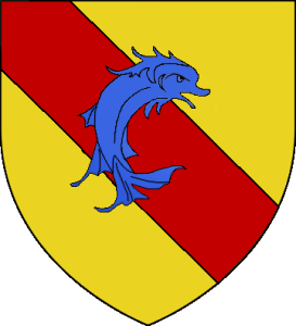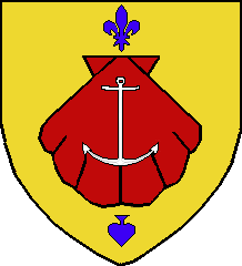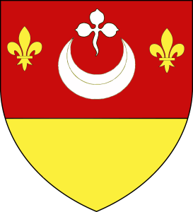 De gueules au croissant sommé d’un trèfle, le tout d’argent, accosté de deux fleurs de lys d’or, à la champagne du même.