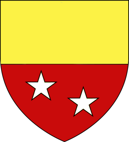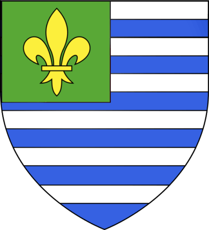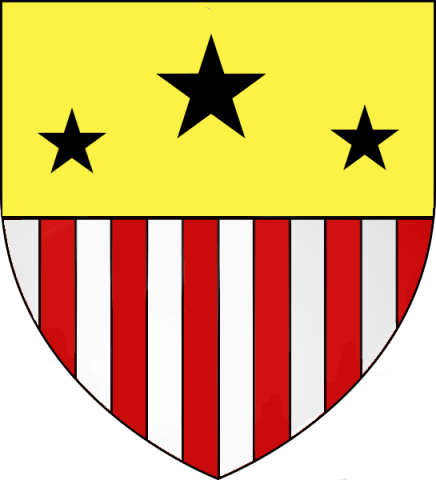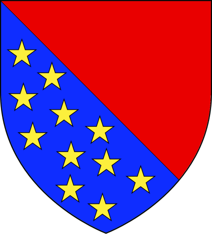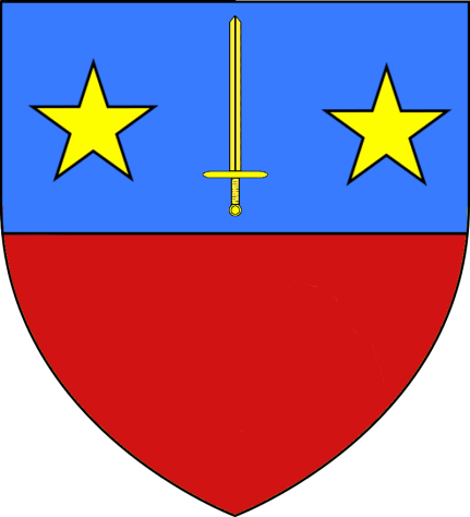 Coupé d’azur et de gueules, le 1 à l’épée, pointe en haut accompagnée à dextre et à senestre d’une étoile, le tout d’or.