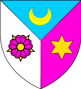 Tiercé en fasce, de gueules et d’or, le 2 chargé d’un vol d’azur.