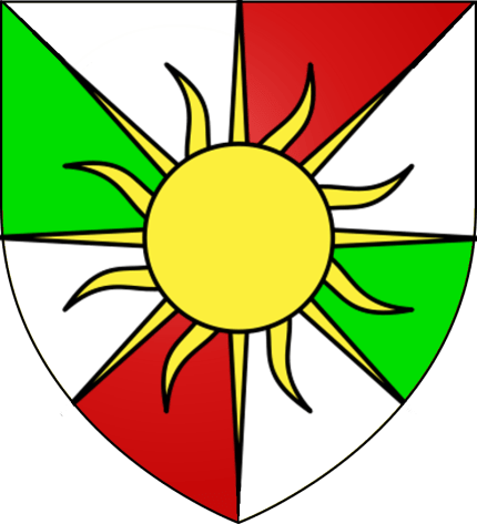 Gironné d’argent, de gueules et de sinople, un soleil d’or, non figuré, brochant sur la partition.