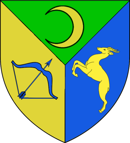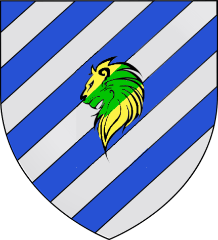 Coticé en barre d’argent et d’azur, à la tête de lion arrachée, d’or barrée de sinople.
