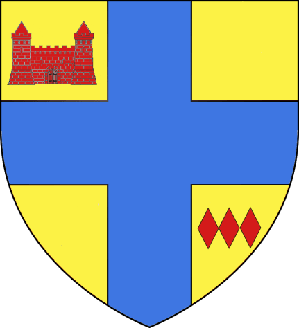 D’or à la croix d’azur, le 1 au château, le 4 au trois losanges, le tout de gueules.