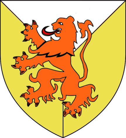 Tiercé en pairle, d’argent et d’or, un lion rampant d’oranger, armé et lampé de gueules brochant sur la partition.